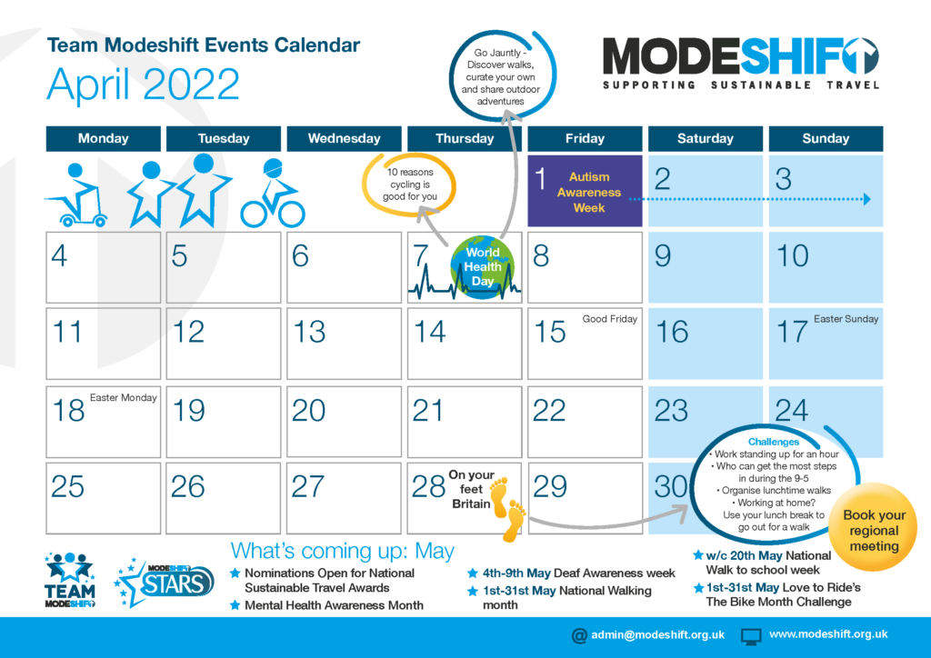 We are delighted to share our new Team Modeshift Events calendar for April 2022.
